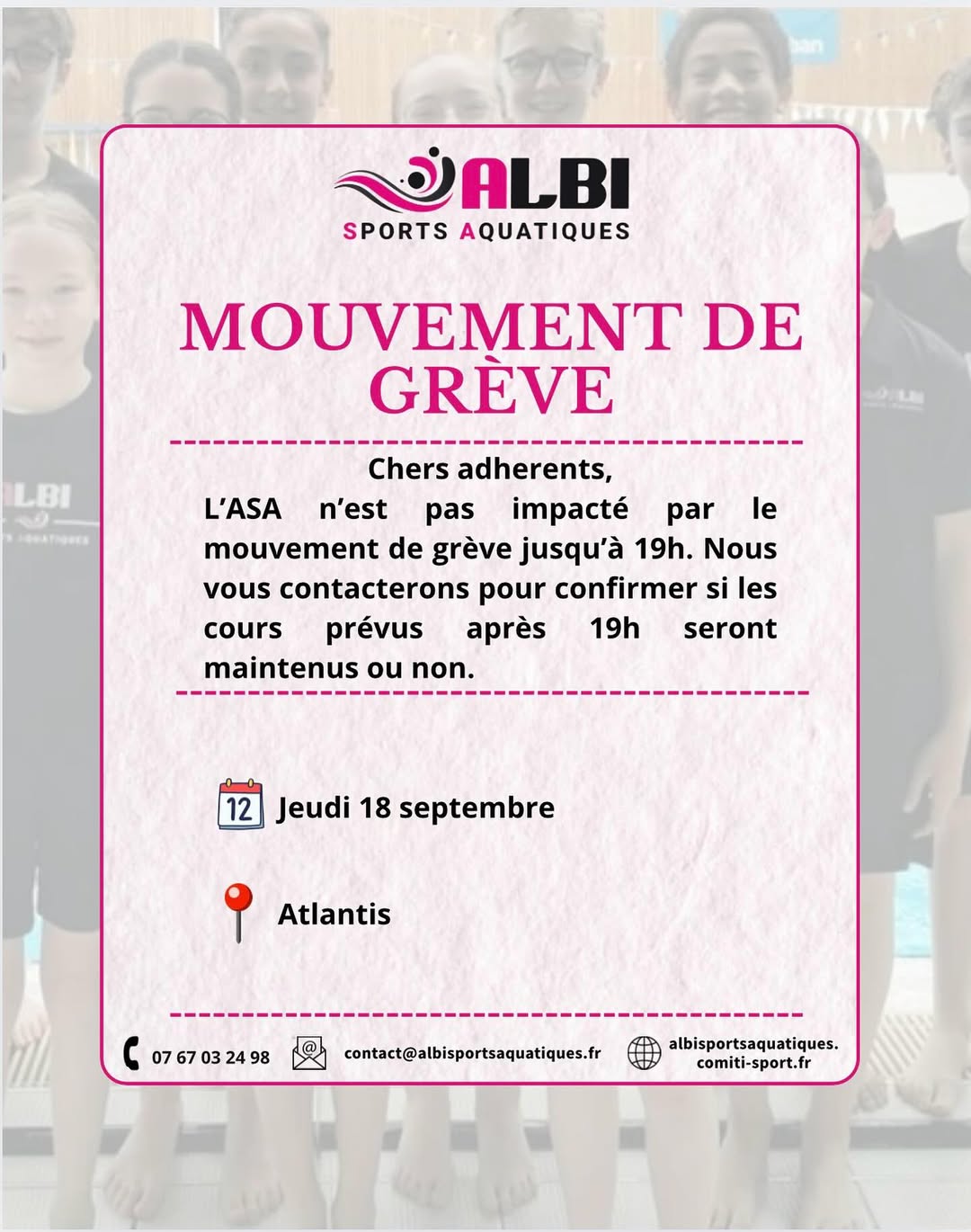 Tous les cours de l’ASA sont maintenus ce jeudi 18 septembre.